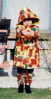 | 正心実業専門学校の皆様へ 妻も自分で何でも作る口。でも、コートを見てビックリ。これ、生徒さんが 作ったの?っと、感心してました。作りもそうですが素材も良いですね。 暖かくて軽い、柄も明るく画像で見たより全然良かったです。子供のこと 考えて制作したのがよく伝わりました。 きっと生徒さんも大人になったら子供に洋服作ってあげるんでしょうね。 なんだか嬉しく思います。 さて、コートが当った時の喜びは親が、言うまでもありませんが受け取って 一番喜んだのはもちろん娘でした(^^) 届いたその日はもう大変。一日中着てましたよ。よっぽど気に入ったみたい。 遊びに行くのが好きな娘です。 このコートを着て今度はどこに出かけようかな? 最後に・・・ プレゼントのコートありがとうございました。 これからも皆に喜ばれる物たくさん作ってくださいネ。 ガンバレ〜 (^^)/~~ 長谷川 学 |